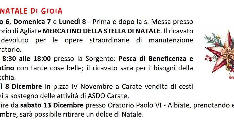 Parrocchie di SS. Ambrogio e Simpliciano (Carate B.za) – San Martino (Costa Lambro) – SS. Pietro e Paolo (Agliate) – S. Giovanni Evangelista (Albiate)