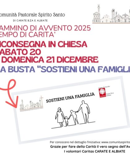 Sabato 14 e Domenica 15 Dicembre siamo invitati a consegnare in Chiesa le buste della Solidarietà di Avvento “ADOTTA UNA FAMIGLIA”: il ricavato sarà utilizzato …